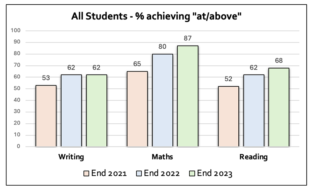 Writing will be our main focus area in 2024. Many of our students below curriculum expectations are English language learners, and are receiving additional support to boost their language levels. This will be ongoing in 2024.