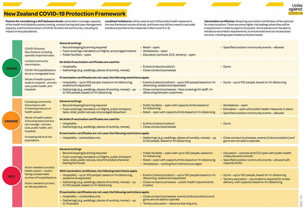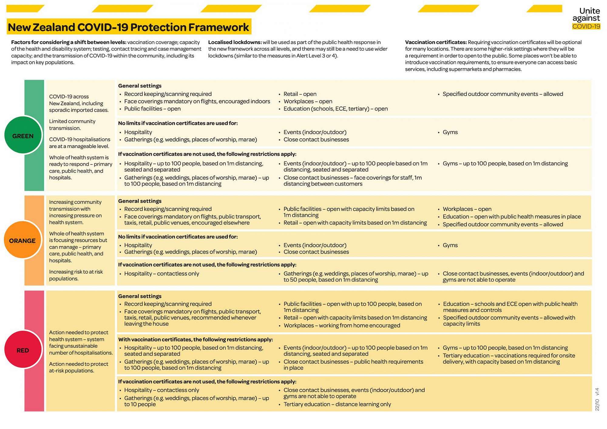 More information can be found online here: https://covid19.govt.nz/alert-levels-and-updates/covid-19-protection/