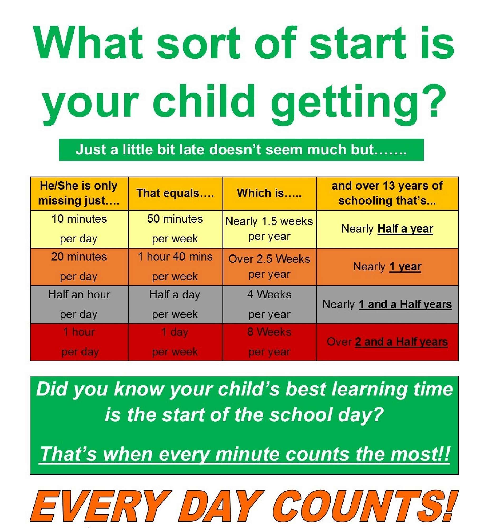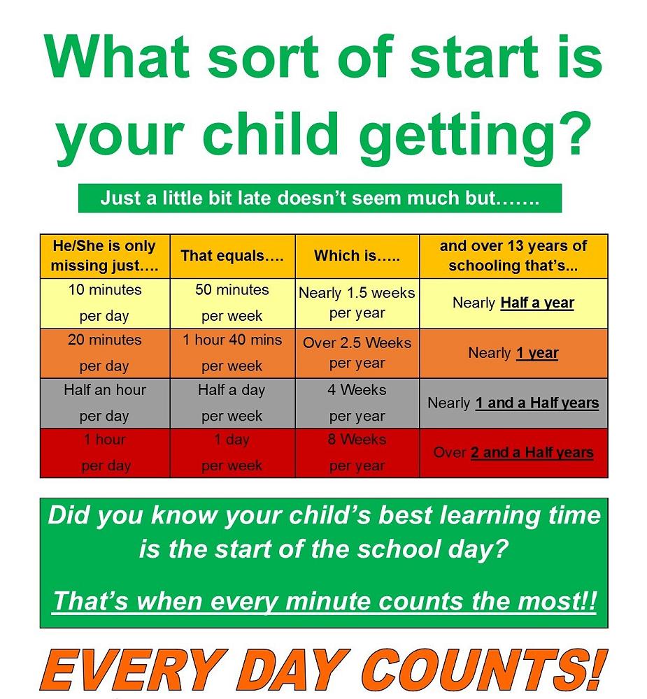 Research shows that students who are regularly absent or late to school are more likely to have gaps in their learning making it more difficult to keep up with their peers.