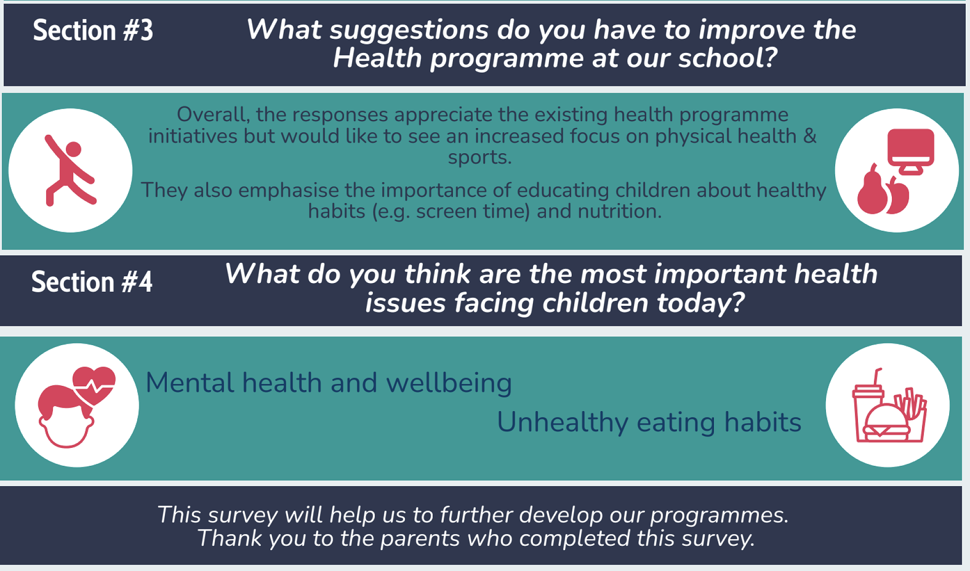 Please see below a summary of the feedback received from the survey sent out last term. Thank you to those that responded, and this will help us further develop our programmes.