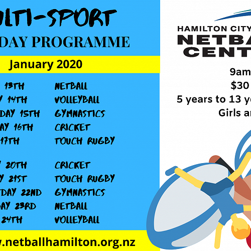 The YMCA are running holiday programmes for a wide range of ages at the stadium, and more locally at Endeavour School & Hukanui Primary School.