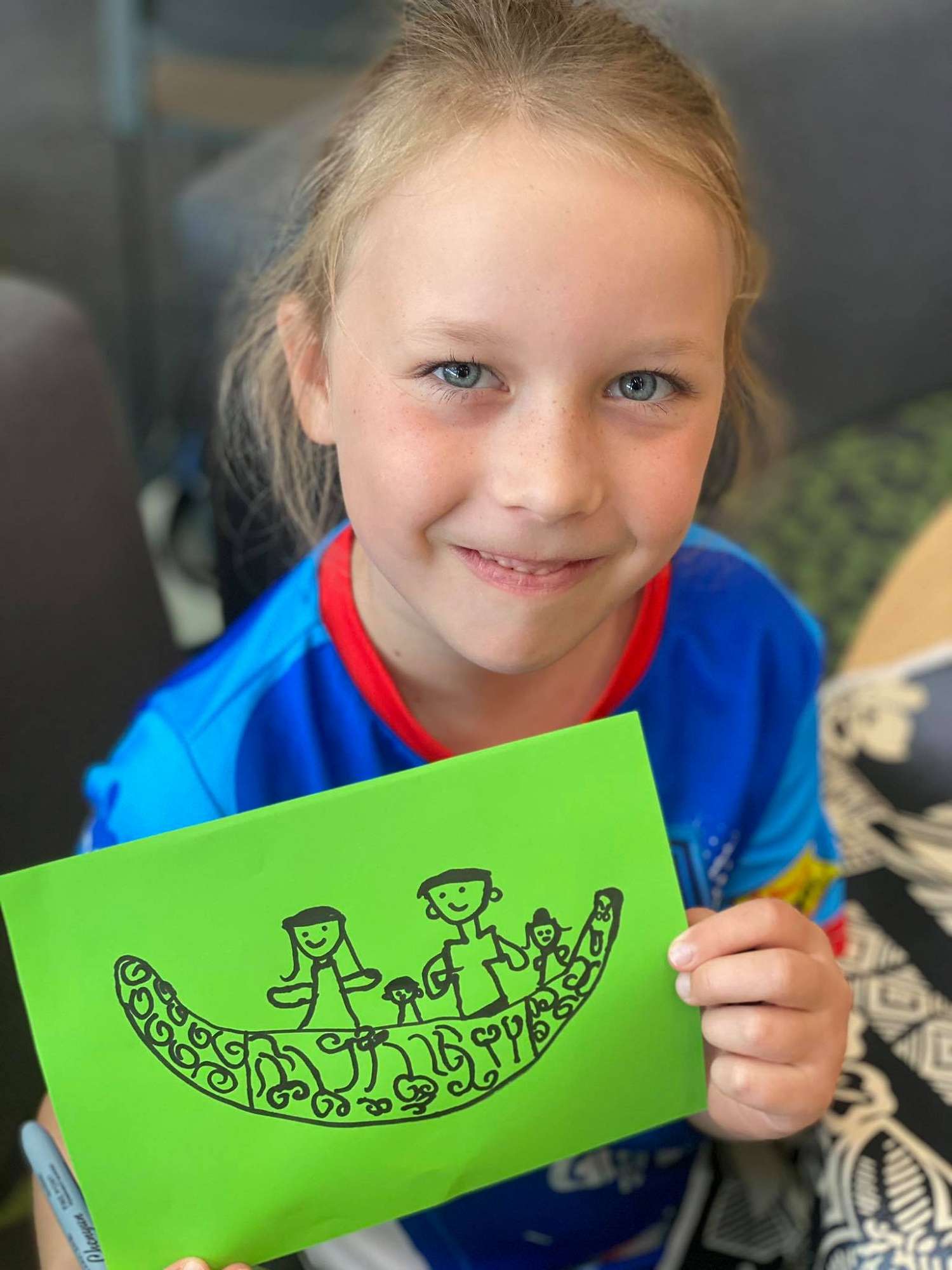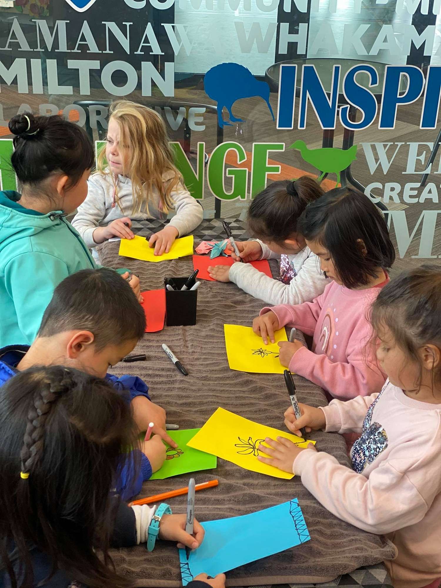 This week we're celebrating Tonga Language Week. These photos show Art at lunch time creating traditional patterns and also some Kererū tamariki trying "Otai" (a Tongan drink made with Mango!) 🇹🇴