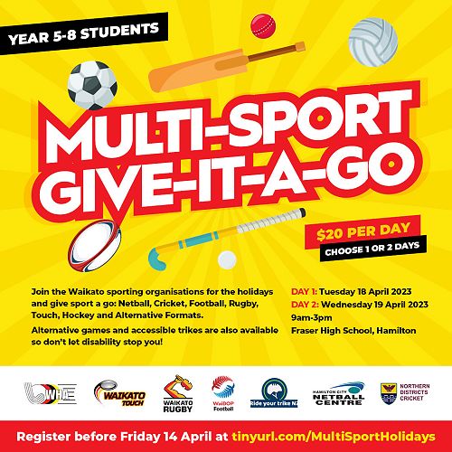 Visit this articleHamilton City Netball Centre has teamed up with some local sporting codes to bring you the Multi Sport Give it a Go! Holiday Programme.