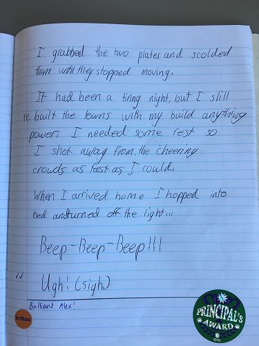 Homeroom 11 wrote recounts yesterday. Alex shared his writing today with me.