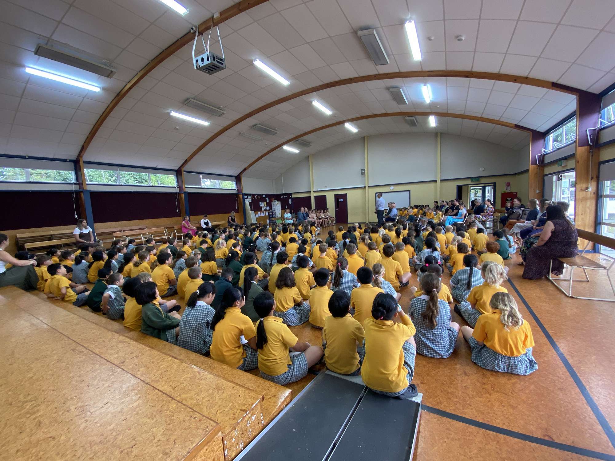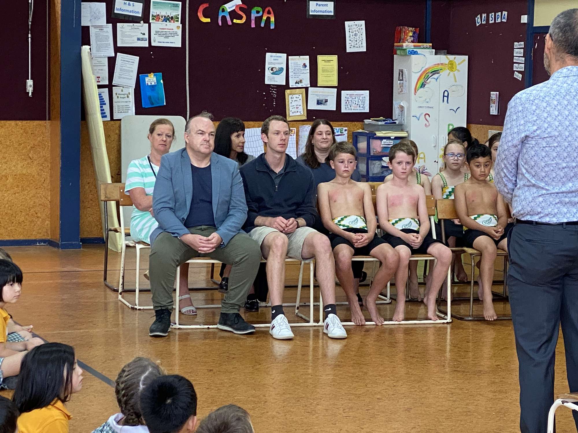 The formal side of the mihi whakatau was then completed with a hongi between Josh and Shaun, and then both parties sharing in some kai together. Our newest members of our school community were invited back to the staffroom for kai, while the rest of the school returned to their homerooms for kai.