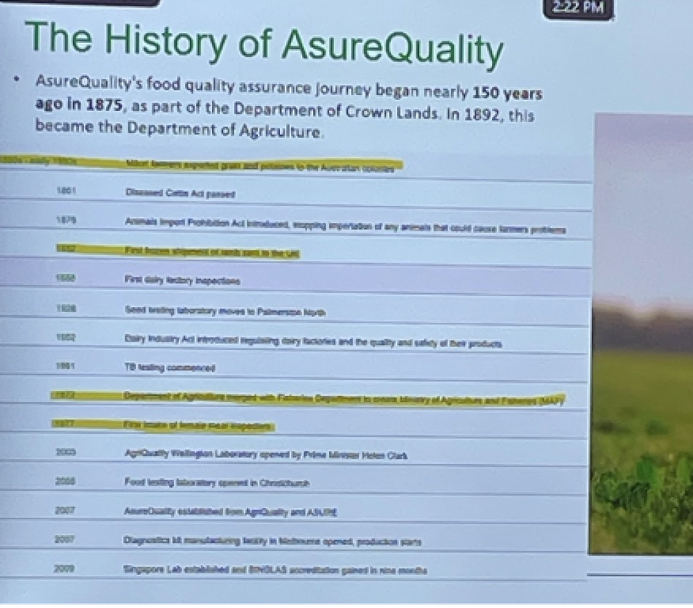 Going to AsureQuality was a great experience.They told us about what they test and inspect ( e.g food, pet food ,plants ,meat and animals). Samara also told us about the most common diseases in cows