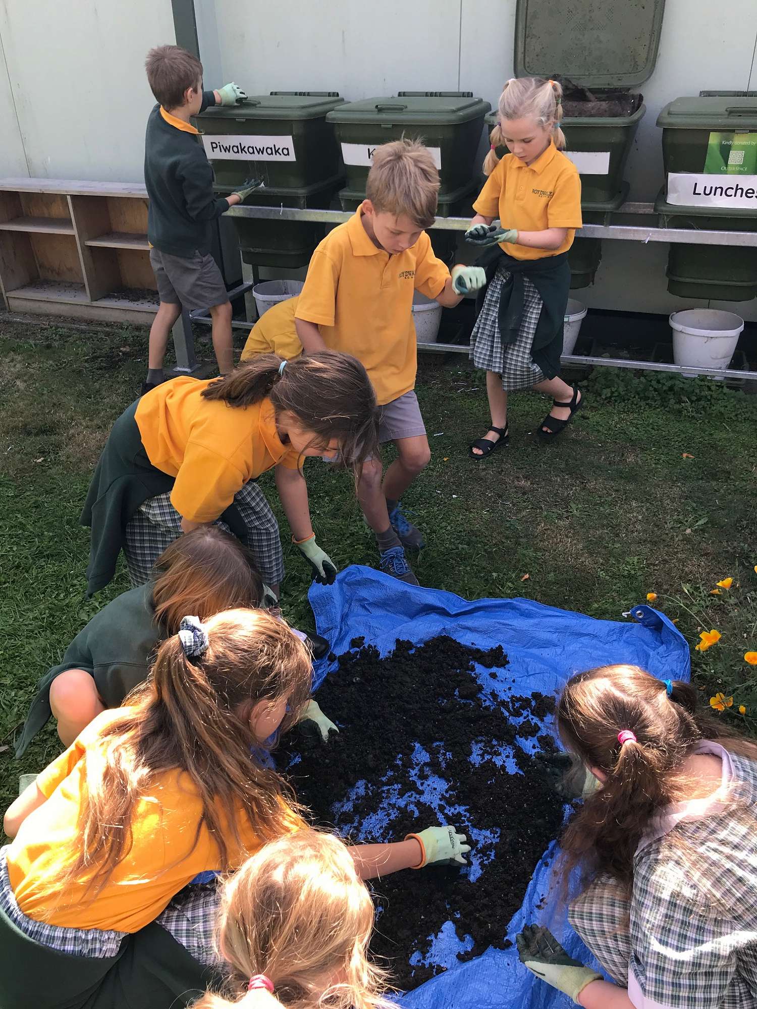 Our Worm Warriors are a dedicated team of Kererū students who work with Miss K to manage our school worm farms.