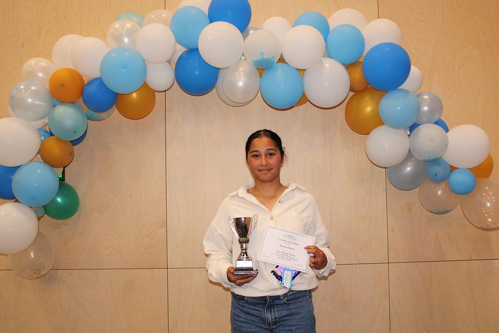 Julie Maxwell Award, Kymaira Flavell: The Julie Maxwell trophy is awarded to a senior student that shows all of the Te Aratai College values through their contribution to sport.