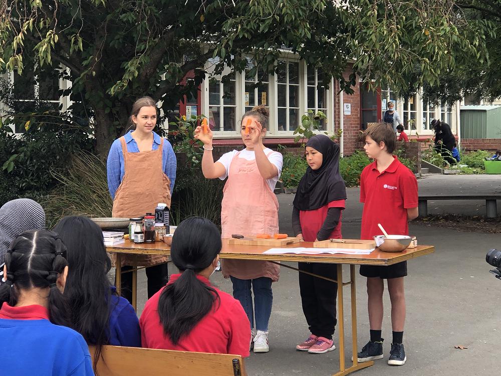 The sisters set up a table outdoors and taught our learners about healthy, sustainable cooking using ingredients that are easy to access with lots of vegetables and complex carbohydrates for energy!