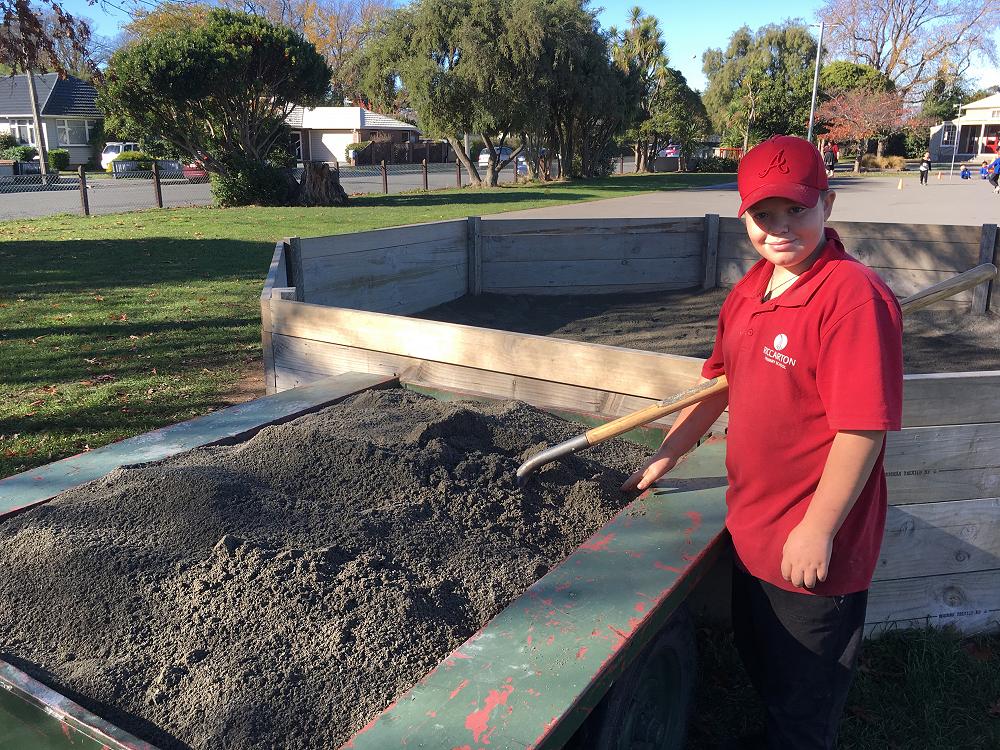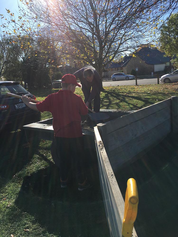 On Friday 24th May 2019, Colin and Dontay worked hard to shovel a trailer of sand/clay mix into the Octoball pit.