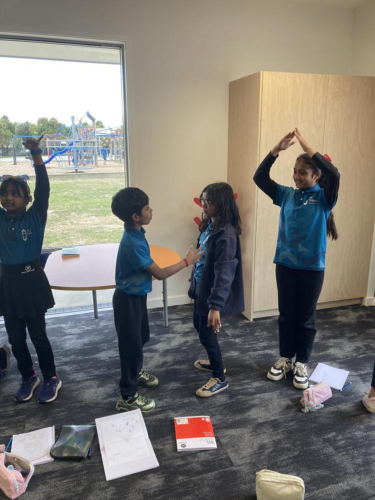 We have played some fun drama games like 'Space Jump' and 'One Word Sentence'. The past few weeks we have been developing a dance based on our happy place. The students developed two moves to represent their happy place, then joined them together with a buddy and eventually we had created a whole class dance.