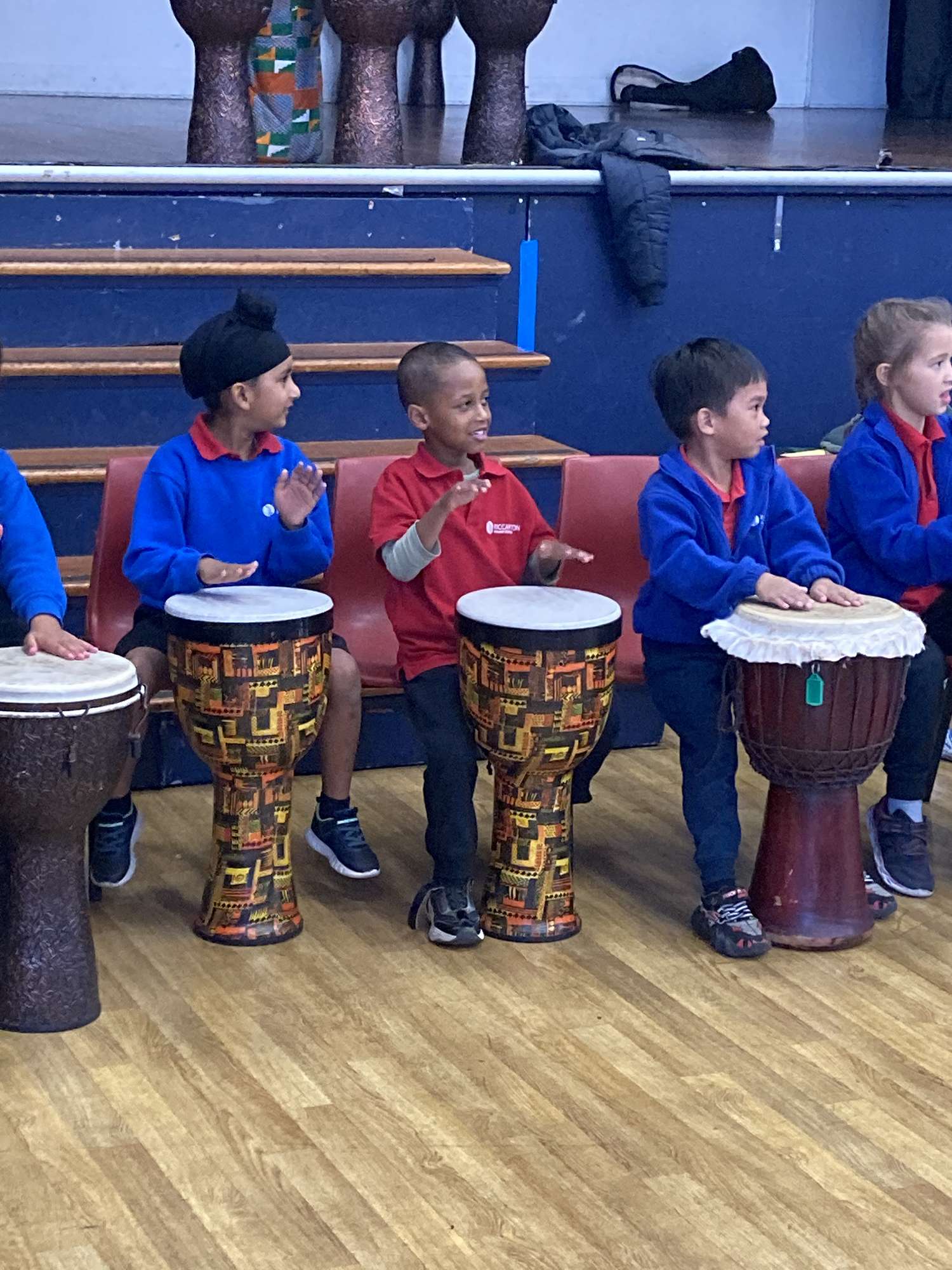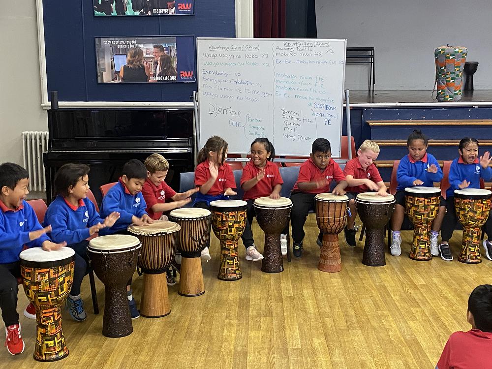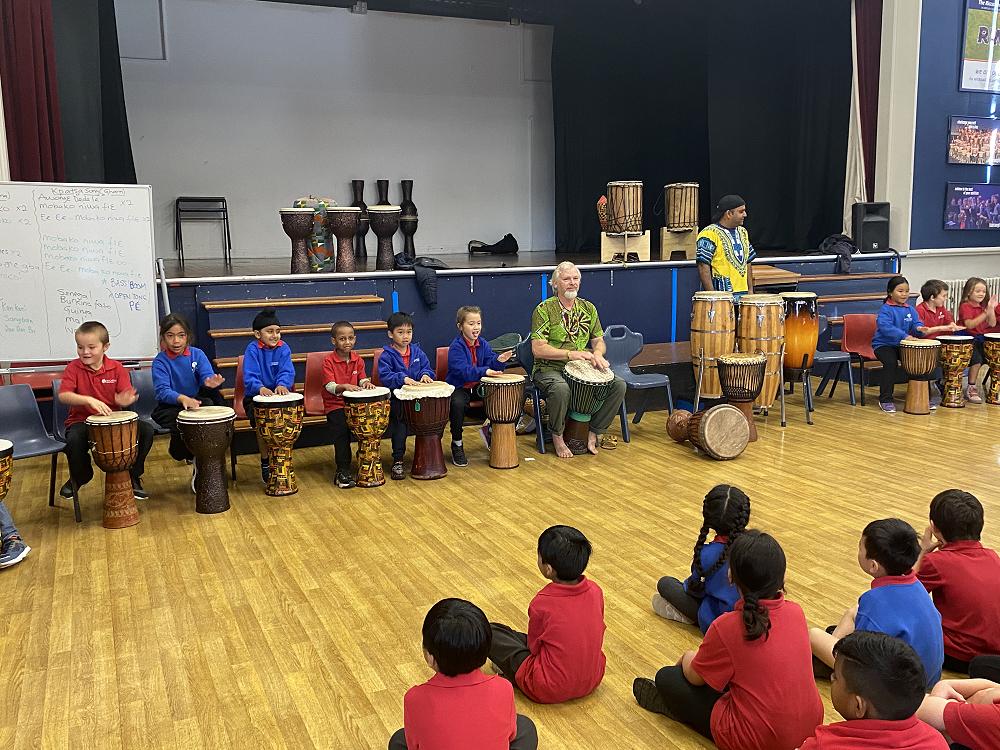 Team Pātītī (Rooms 4, 5, 6 & 13) had an amazing opportunity today when they went over to Riccarton High School to take part in a drumming performance by Robert Koffie Fugah, a Ghanaian drummer.