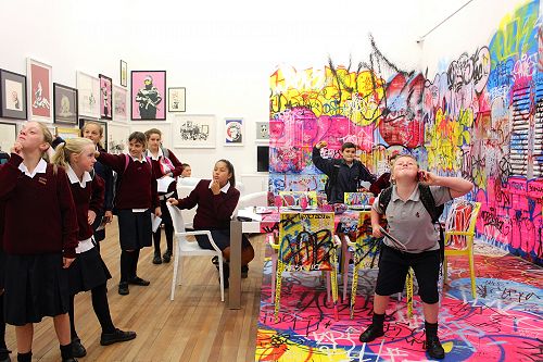 Students were able to compare images in "Larger Than Light," which included 4.5 metre spray cans emitting light from their nozzles to illuminate 8 massive artworks by Spectrum's artists.