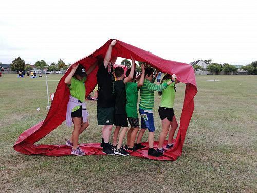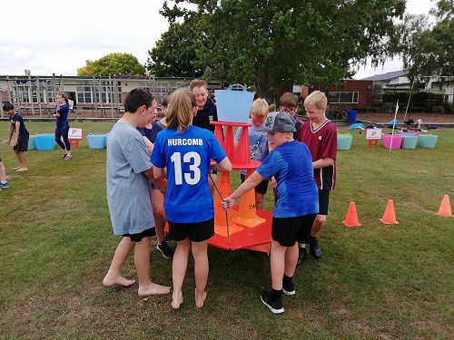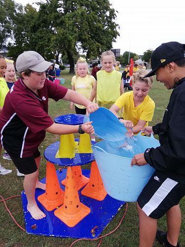 Students dressed in house colours and participated in a range of activities in groups of 6-8. There were 12 different stations run by an instructor from Sport Canterbury, parent helpers and staff. Some of the stations included water activities, mazes and sack and ski races.