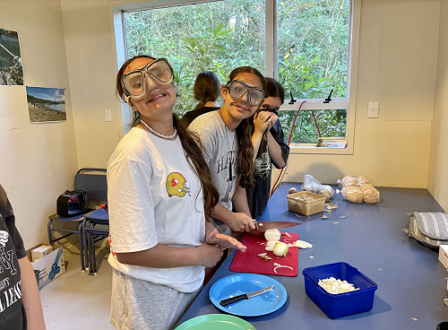 On the first night we had burgers, they were actually good and I’m a really picky eater so it’s probably really good. The groups helped make the dinners and my group made 2/3 of the dinners because we were the only group there to do it. The second night we had lasagna and that was also really good. On the third night we had nachos and we were supposed to have ice cream but we had to go home early so we couldn't.