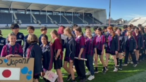 Most people on the team made posters or signs to support the team while they trained. It was really inspiring to watch and learn from a professional football team. Everyone who went to watch, teachers and students, enjoyed their time at the stadium.
