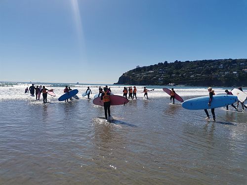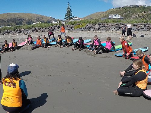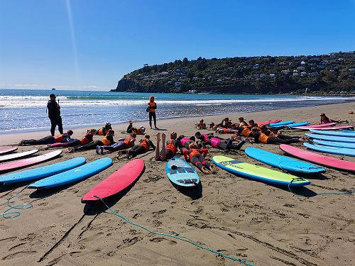 The Sports Academy arrived at Sumner beach at 10:00am, ready to learn from the instructors at the Sumner Surf Club. By the afternoon, the instructors challenged some of the students to stand on their board for five seconds to receive a prize. Many of the students attempted the challenge and succeeded.
