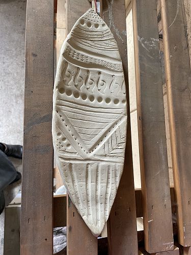 The 1st step was to make the base shape of the waka out of clay. Students tested designs and patterns on a little piece of clay to see if they liked how it looked and if it related to them and their culture. When their design was completed they transferred it to the real thing by using a range of tools and techniques. After drying in the kiln room they scrape off the dust and extra pieces then use tools to re-shape it if anything broke.