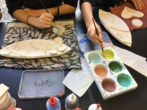 Work was left to dry for two weeks and then bisque fired in the kiln. Next comes colour and glazing. Students are enjoying the process and it’s wonderful to be back in the art room using such a great resource.