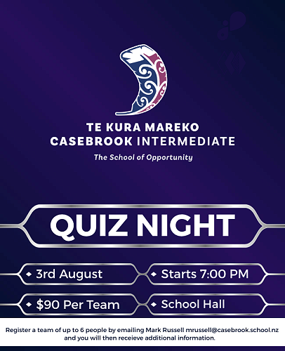 Register your team name by emailing Mark Russell: mrussell@casebrook.school.nz.
