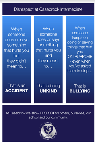 Each class went through the process for reporting a bully and understanding the difference between an accident, bullying and unkind behaviour (photo attached). We encourage ākonga to report both of these to a teacher. There was also learning around a bystander and an upstander.