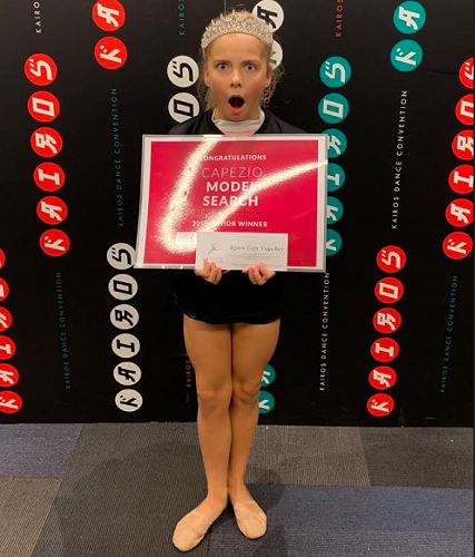 There was a capezio model search and Lily and another friend entered it. On Saturday there was a half an hour workshop. The person that ran the photoshoot told us how to pose for a camera. She said start in a simple pose like a plie then add arm or lift a leg. She said you can create interesting poses by just adding from something simple. There were two groups for the photo shoot. Lily and her friend were both in the second group so they were doing it on Sunday. For the photoshoot we had to have three poses. A standing pose, a casual, and a technical pose. The technical pose you could do a jump or something bendy. The results for the photoshoot were present at the showcase like all the other awards. There were two winners, a junior and a senior. The junior got a tiara and the senior got a very large crown.