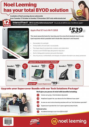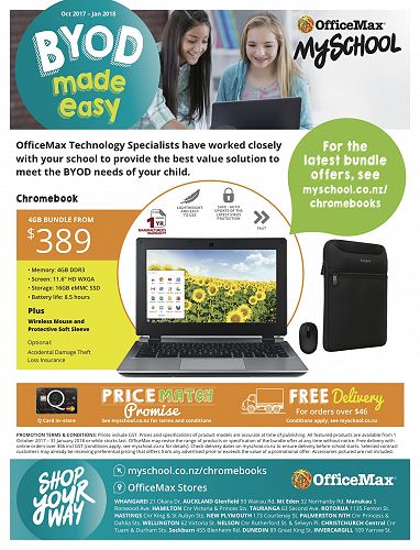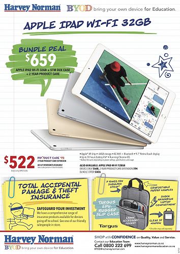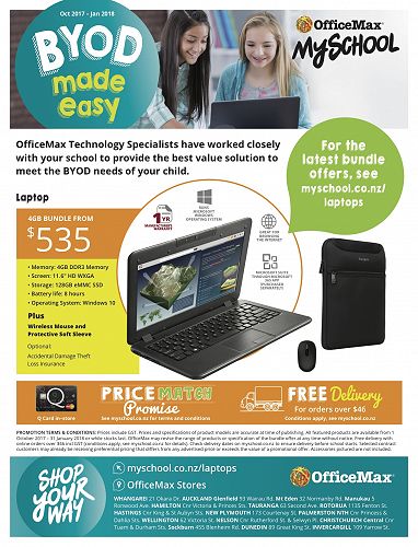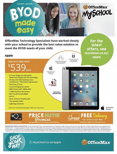 As a follow-up to our Year 4 and 5 parent BYOD session (at the end of last year), it was requested that we source some bulk purchase / discount options on behalf of parents. I have explored bulk purchasing with a number of companies which all feel as they bulk purchase devices (in the thousands) there is very little financial gain that could be passed onto parents if we bulk purchased 20 or so. Also it opens up issues with who the warranty is 'owned' by if the school purchases the devices on behalf of parents. However, I have made some progress on getting some great "Education" prices. I have attached three flyers from Noel Leeming, Office Max and Harvey Norman. I am told that these are the best prices that each of them can do, some have price match guarantees.