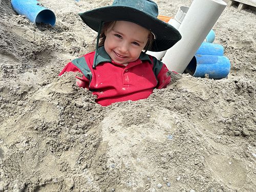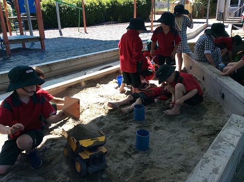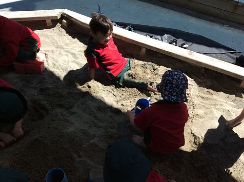 FUNDAY TUESDAYSome of us in Tuna have never been in the sandpit before. Most of us remembered to take our shoes and socks off first... we are all learning to put our socks inside the shoes so we don't lose them! In the sandpit we used our imaginations to create Kingdoms filled with princes and princesses and we found a twig for a flag on the castle. Some other children thought it would be fun to get buried. The sand tickled a lot. Whaea Tanya just sat with her feet in the sand... she said that if she closed her eyes she felt like she was on a beach... alone! We were also allowed to put some water in the sandpit... normally we are not supposed to do this... we felt a wee bit naughty!