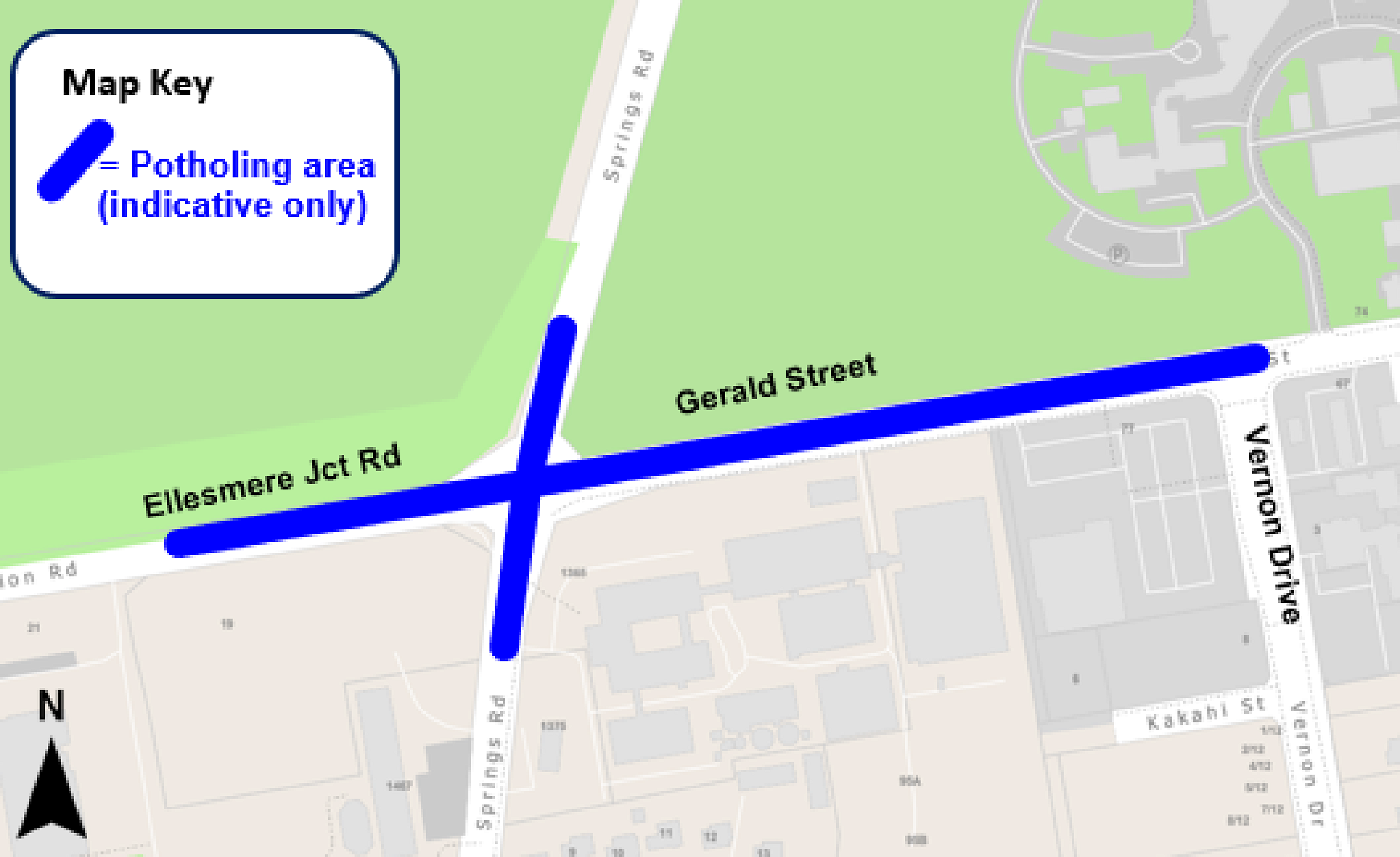From Tuesday 24 March, we will be carrying out underground service investigations referred to as potholing along Gerald Street, from the Springs Road roundabout to approximately 45 Gerald Street, for around two weeks.