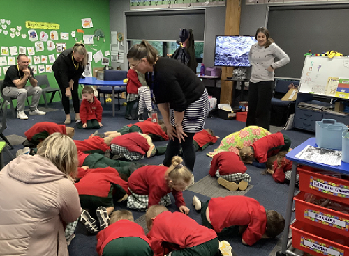 In the mornings we play a game called ‘Hedgehog’. We all scuttle around like hedgehogs and then we have to become a hedgehog. Someone is covered up and we have to guess who it is. It is so much fun!