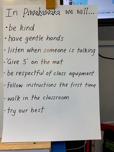 Earlier in the week we established an ‘Essential Agreement’ for our Piwakawaka class.’ Together we came up with some expectations around how we can all successfully work with one another in a safe and caring environment. The children had some great ideas.