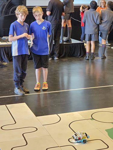 On their arrival, a minor hiccup saw their robot spinning in circles on the unfamiliar track. With some swift coding adjustments and some good old kiwi ingenuity – think "number 8 wire" solutions – our stars got their robot back on track.