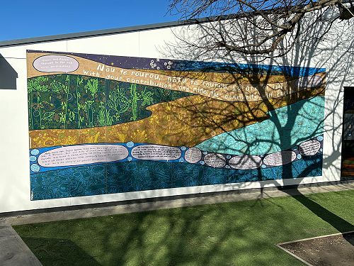 We have shared the final artwork with our local rūnanga Taumutu, and manawhenua, as well as their Education Facilitator for Ngāi Tahu. Both Taumutu and Ngāi Tahu are publishing a write-up of our mural project in their upcoming newsletter/magazines.