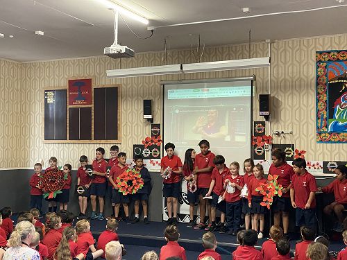 As a school, our theme for our Term 1 learning celebration assembly was centred around the importance of acknowledging those that have served us as a country. We had readings from our students, wreaths that have been created for the dawn service and also the playing of 'The Last Post'. Also during the week, we supported the Templeton Returned Serviceman Association to start off Poppy Week by having poppies available at school each morning and our School Council members Ella, Mary and Eric volunteered two hours at Countdown Rolleston on Friday 16 April supporting the poppy week collection.