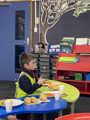 Another example of manaakitanga was shown by students of Ngā Manu Tiori a Tū who stayed together after school to host the whānau hui. They helped each other to prepare platters of kai, set the two tables, one for the adults and the tamariki as well as make welcome signs. They felt proud to be able to serve their whānau kai and to open and close the hui with karakia.