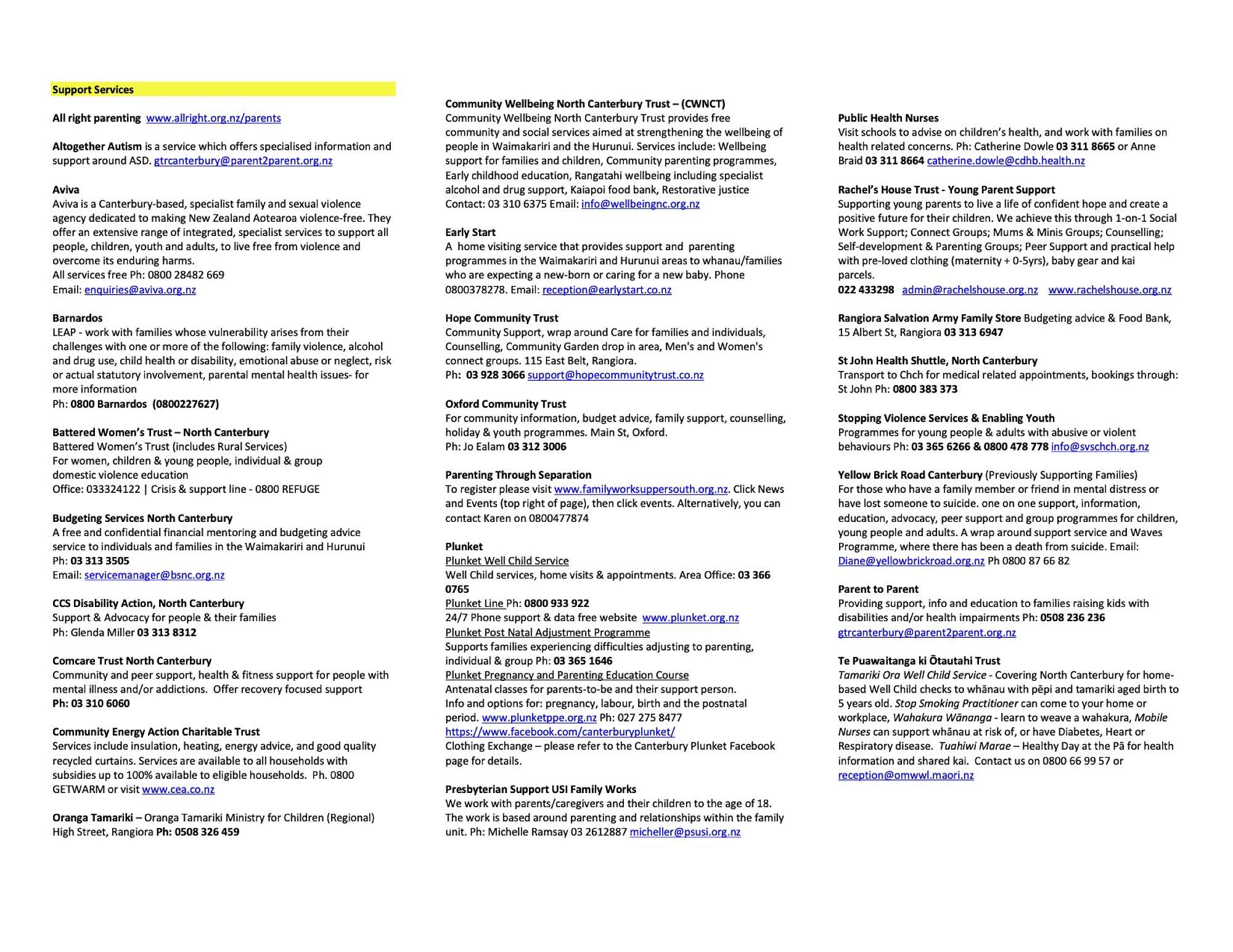 Waimakariri/North Canterbury Parenting Support and Information for Families
