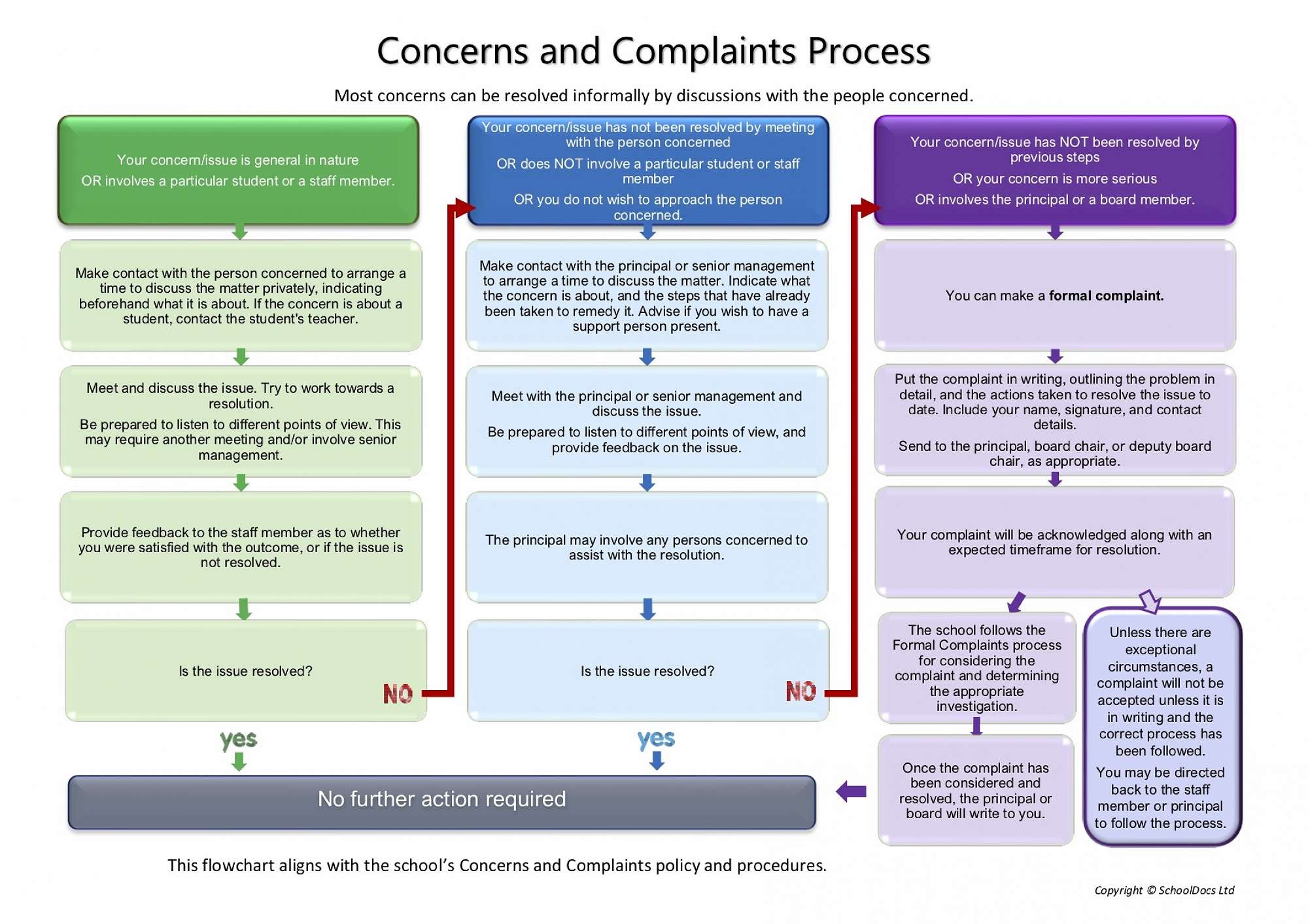 If you come across any concerns or have any complaints please see flowchart attached for the correct process.