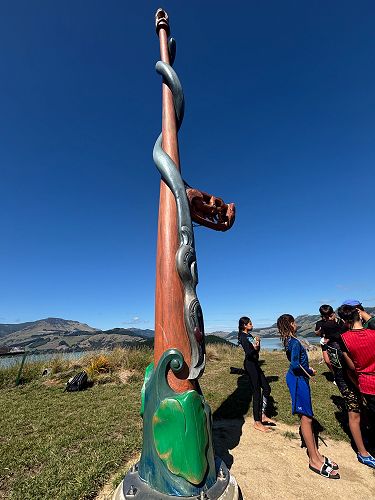 Kāre, e kore, Nā ngā tiaki o te moana,mātou e tiaki, e manaaki i ngā wā katoa. When we arrived at Ōtamahua-Quail Island, there were visitors that greeted us. They asked us, “Where did you come from?’ and I replied,” Hawaiki nui, Hawaiki roa, Hawaiki Pamamao! And then we all laughed!