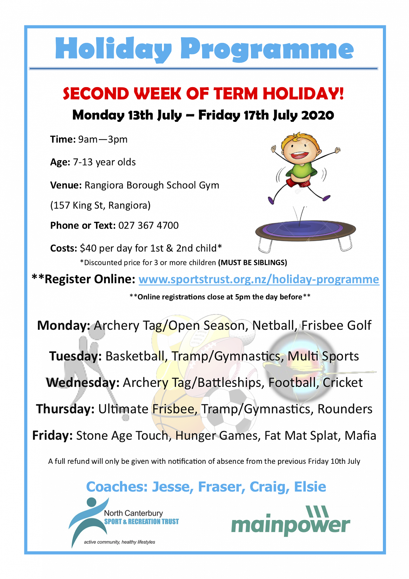 Photo by Tuahiwi School Holiday Programme Tuahiwi School — June 8th, 2020 Monday 13th July - Friday 17th July 2020 Image by: Tuahiwi School