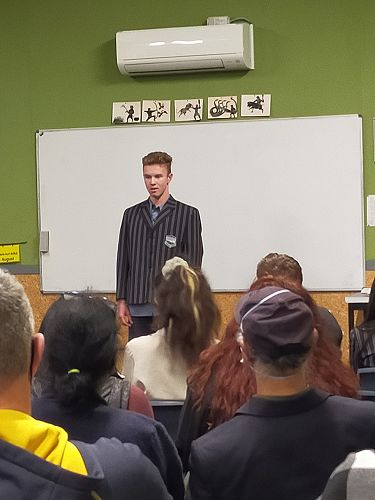 Second Equal - Kyan Simon, with his speech on the economic connection between the novel ‘Of Mice and Men’ and New Zealand today.