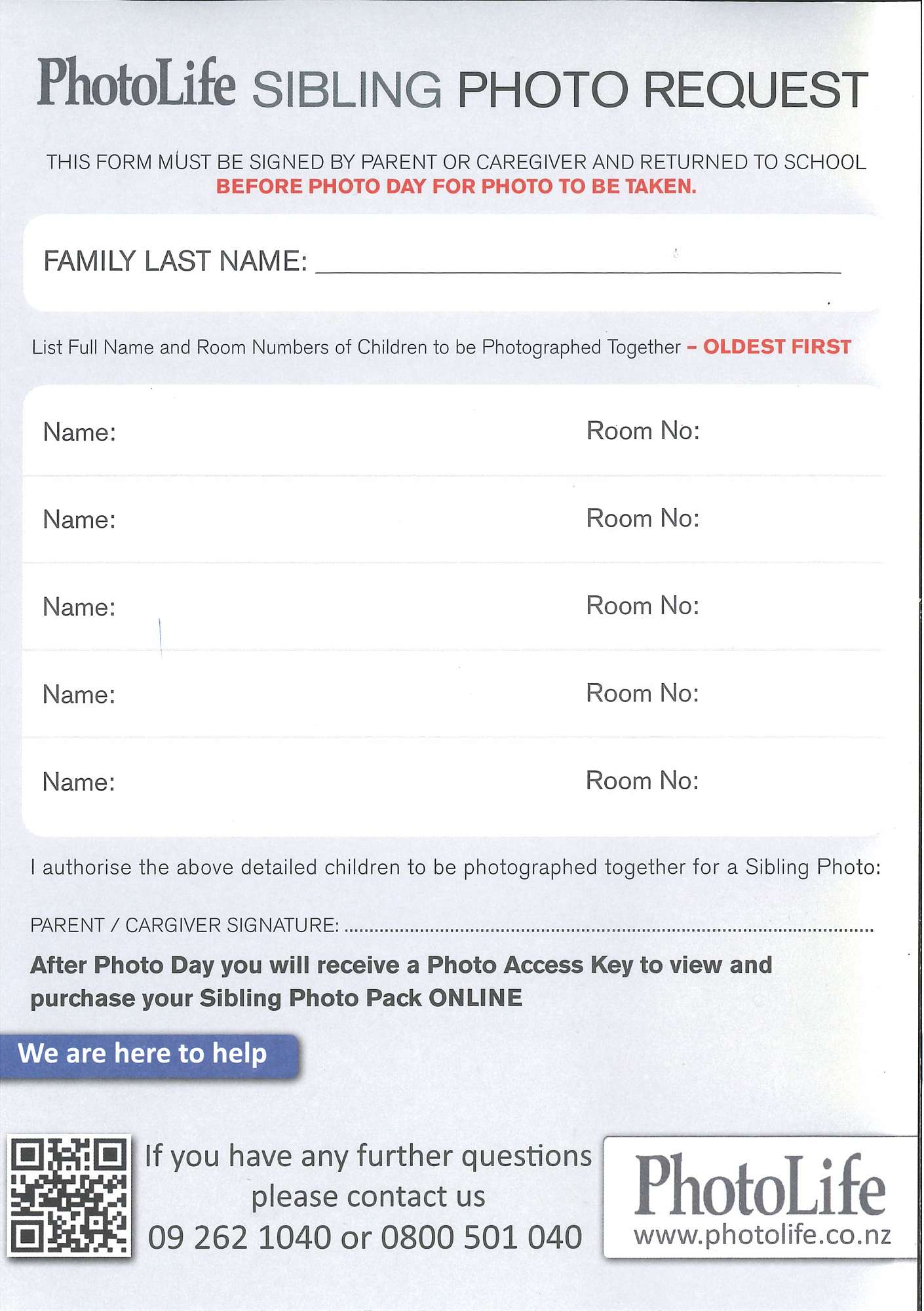 Sibling photo requests need to be made by this coming Monday 22 May and must be signed by parents or caregivers.
