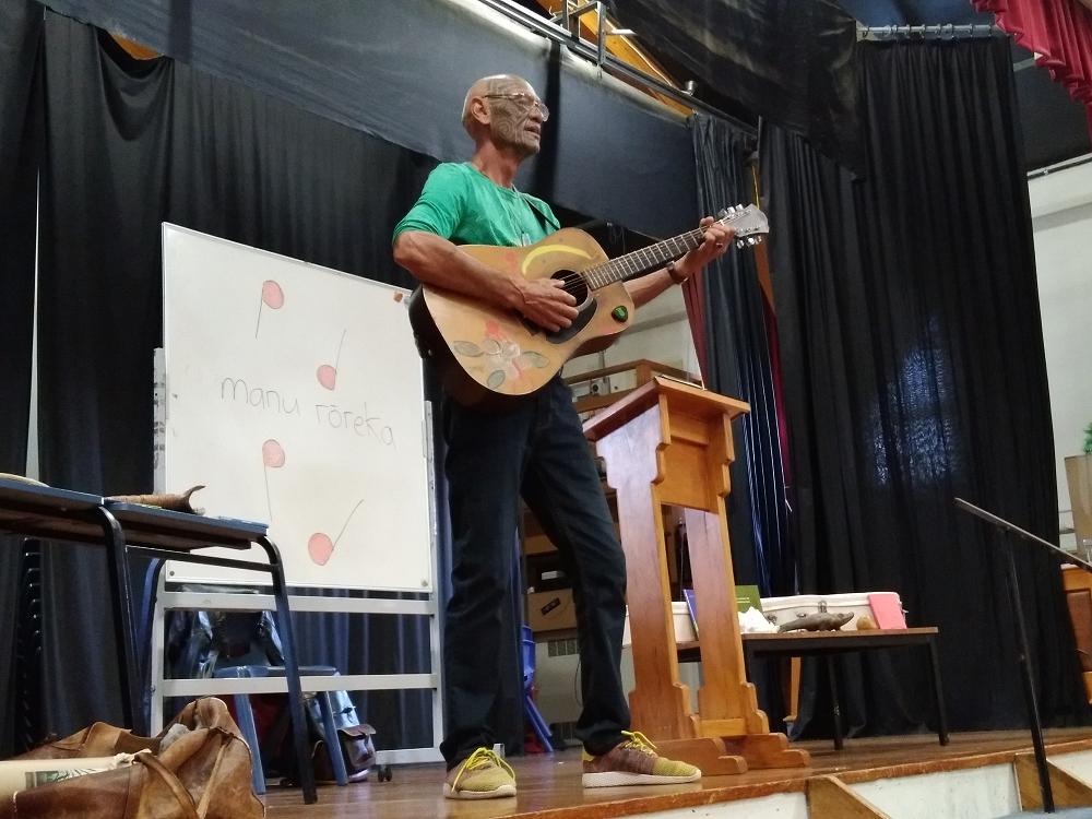 "the crocodile instrument...I kind of felt inspired to learn about Māori culture more.." ," I enjoyed your funny faces and your poem about your daughters", "you know so much about Māori culture and that's really cool", "it made me feel many emotions including intrigued and happy...I learned lots of stories and poems I didn't know about...", "I learned lots about the Māori culture and I felt inspired to learn more", "Your music and poems were beautiful and my favorite part was when you threw the air plane and read it", "when someone had to read the air plane poem and everyone else had to say something back", "the part about your kids made me laugh a lot", "I had lots of mixed emotions throughout the performance, all good though....one favourite part was how you played that one instrument with your nose, that really inspired me to learn how to do that", "From your performance I learned more about the Māori gods...", "after the performance I felt inspired to learn more about Māori culture and write my own stories", "I learned that poems can be funny", "I liked all the instruments...I felt inspired to find out how vibrations change sound", "I liked it when you stomped down and it scared everyone and made them jump from their seats...entertaining".