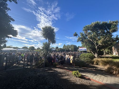 Happy, smiling, and a few nervous faces gathered in the sunshine as Whaea Niki, Kaikaranga performed the Karanga | Call, a welcome safe pathway onto the school grounds. This is a spiritual call and a sacred tradition. Ariana Batstone the Kaiwhakautu, a Parent Representative on the Board of Trustees accepted the call and responded.