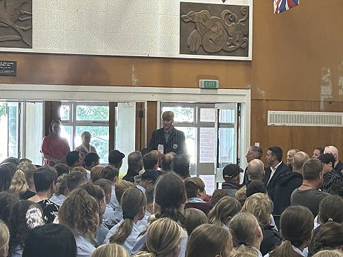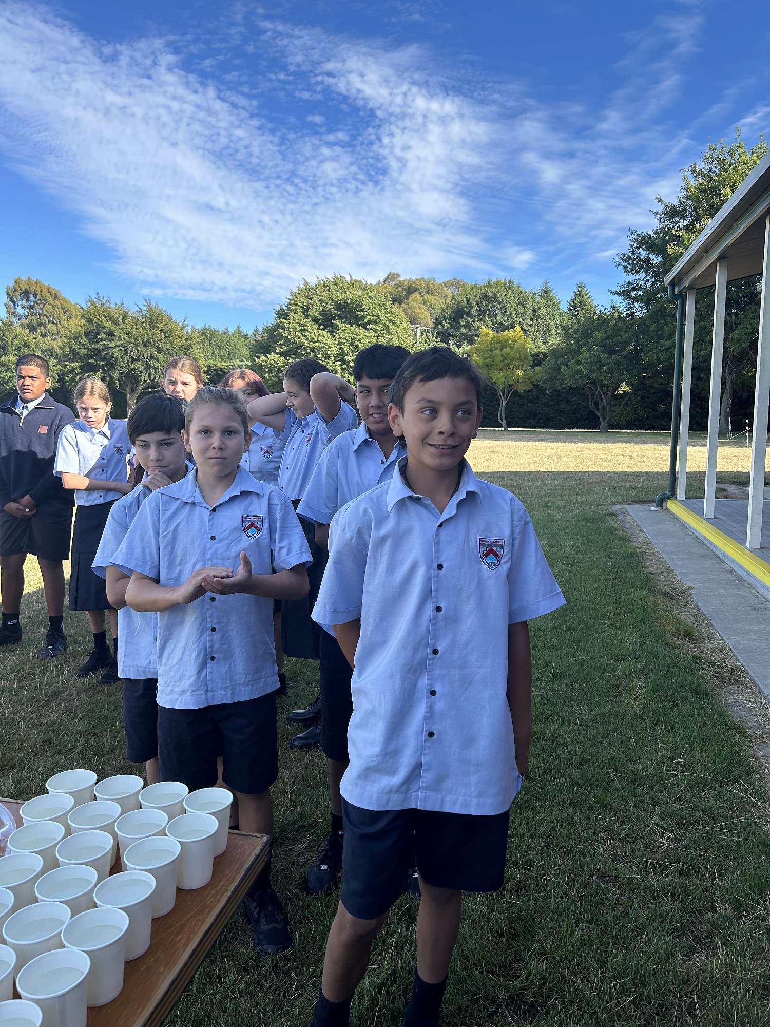 With covid still lingering in the community the traditional hongi was replaced with an "air hongi" by the assembled crowd. Iroquois Ross represented the student leaders and student voice with a welcome speech specifically to the new students. The ceremony concluded with a karakia by new Year 7 student Leon Brostow before a shared kai.