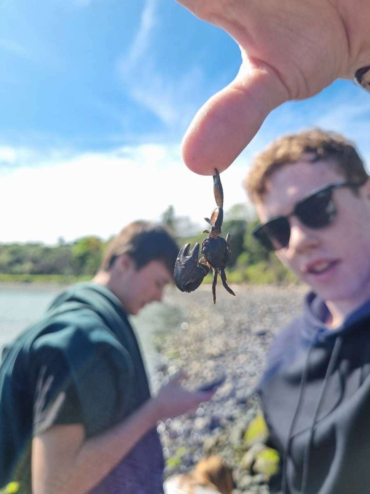 After this we drove to the Akaroa Area School to have some shared Kai and to meet Akaroa's History teacher Gary. Gary joined us for the next part of the trip which was in Red House Bay. We went to the shoreline of what was once the largest settlement in the area to recap all we had learnt that had happened around this area and Gary pointed out some significant areas we could see from the beach. After talking about the history of the land we ended up walking along the shore, searching for sea glass, crabs and pretty stones.