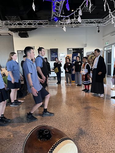 Monday 14 August, 18 students were invited to the Bicchu Kagura workshop at Te Ara Te Atea in Rolleston. We were first shown a video about the creation of Japanese Kami (Gods of Japan) which was similar to Maui catching the son in Māori culture. We were then shown two cultural performances, the first one had cultural masks, intricate fans and samurai swords.