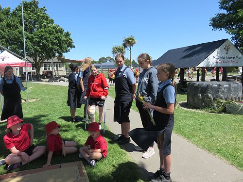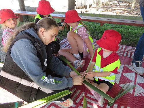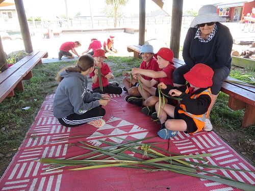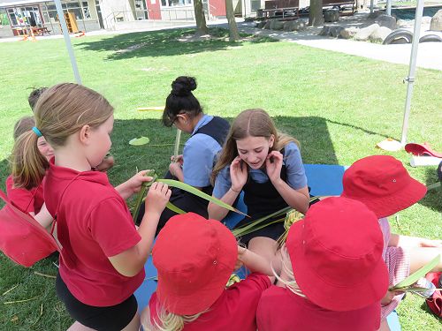 DHS supporting the Enviro Day by teaching tikanga and creating a simple putiputi | flower out of harakeke.