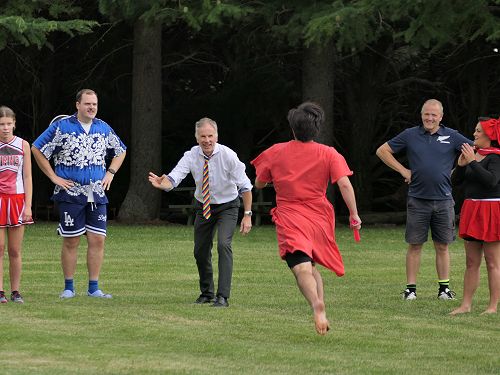 A full day of sports - a mix of traditional and non traditional athletics with some extra games thrown in. Finished off with house relays and juicys for everyone before the rain came down.