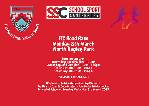 28th Sun - Southern Schools Cross Country Timaru 2023 Year 7-13 students - Ashbury Park - Prior to NZSS - see Pip for more info