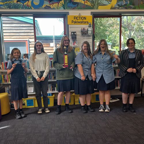 Visit this articleThanks to 28 student librarians, our library is efficient and friendly. Once every term we get together to share kai, have a few games and laughs and importantly present the DHS Library Oscar.